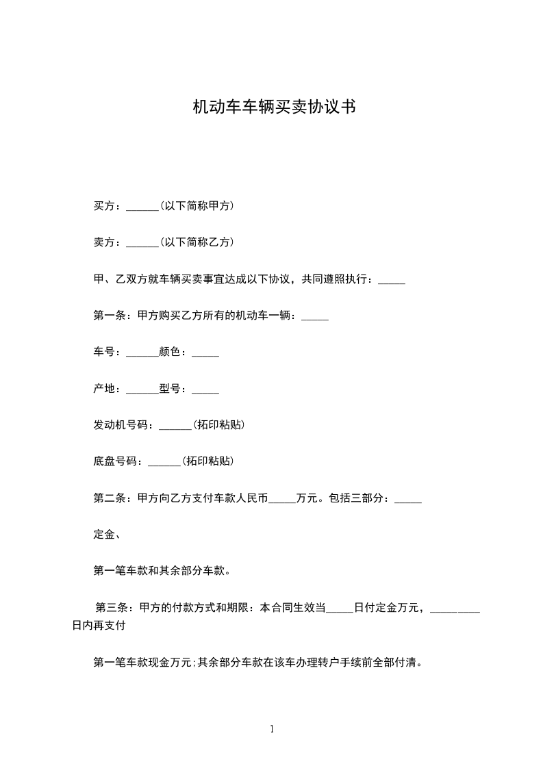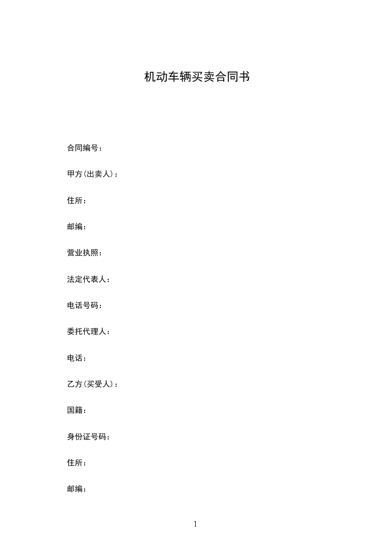 甲方出卖的是一辆全新 轿车(颜色: ),该车辆由甲方在 专营店售出。发动机编号为 号;车驾编号为 号。
