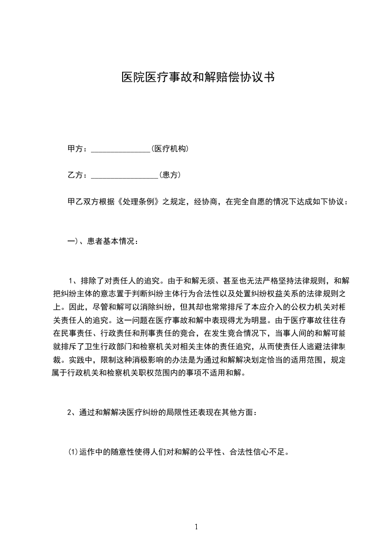 自愿、诚实信用的原则,根据《医疗事故处理条例》及相关法律法规,经充分协商,达成本协议如下,共同遵照执行。