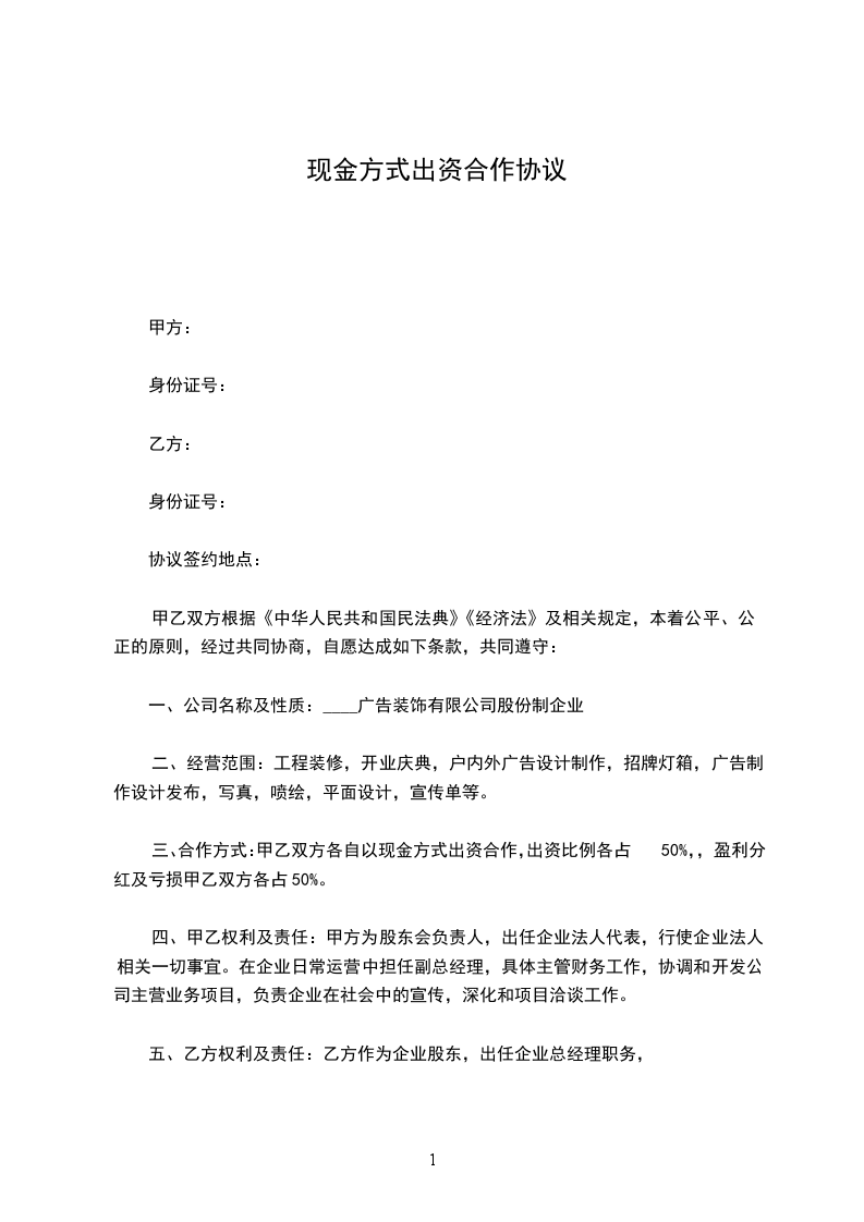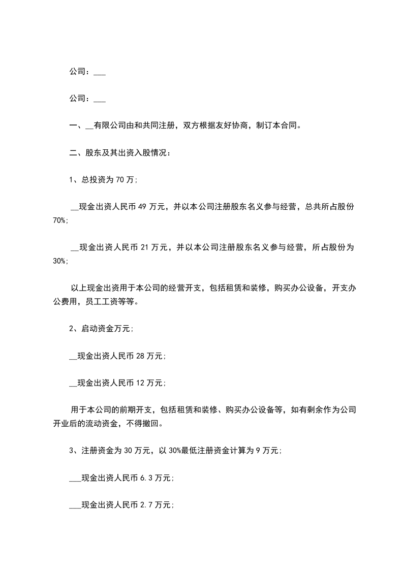 乙方以________现金及设备________作为出资,出资额________万元人民币,占公司注册资本的________%;