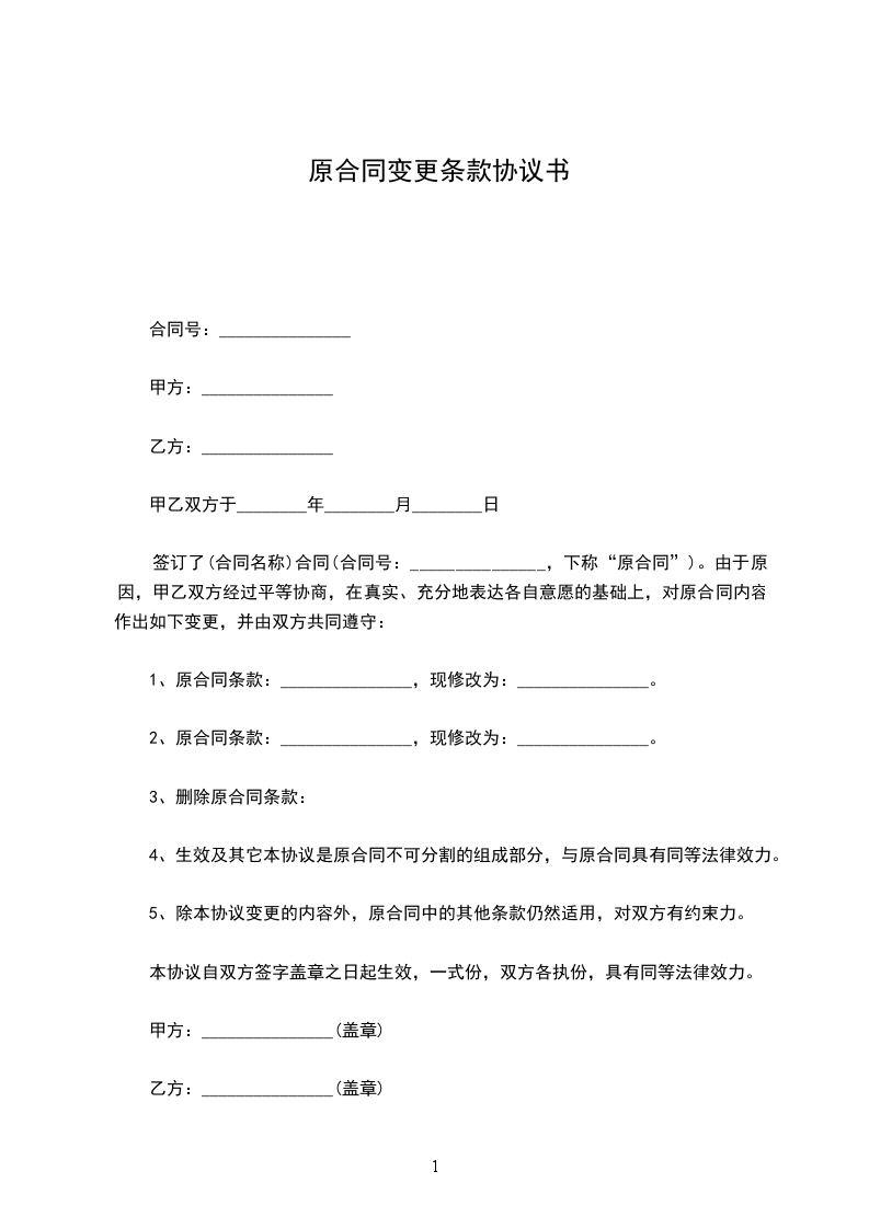 签订了(合同名称)合同(合同号:_______________,下称“原合同”)。由于原因,甲乙双方经过平等协商,在真实、充分地表达各自意愿的基础上,对原合同内容作出如下变更,并由双方共同遵守: