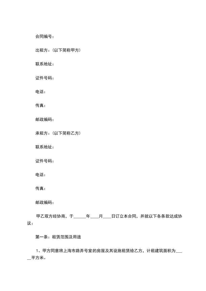 1、甲方同意将上海市路弄号室的房屋及其设施租赁给乙方,计租建筑面积为_____平方米。