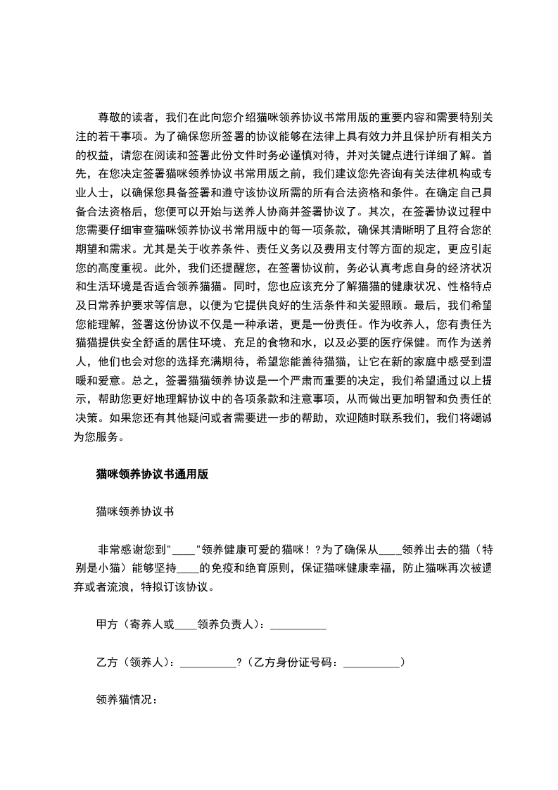 1. 领养后,甲方享有猫咪的饲养、照顾及陪伴等权利。