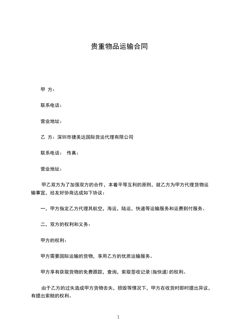 一,甲方指定乙方代理其航空,海运,陆运,快递等运输服务和运费到付服务。