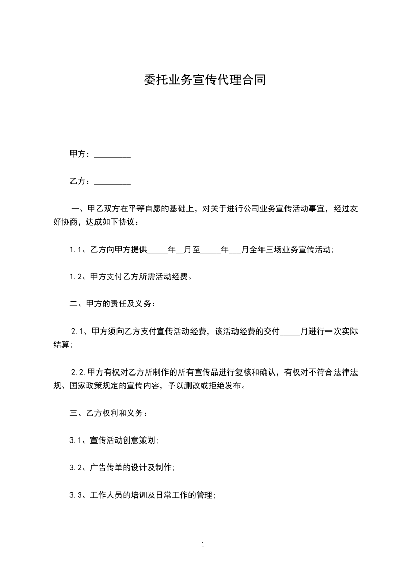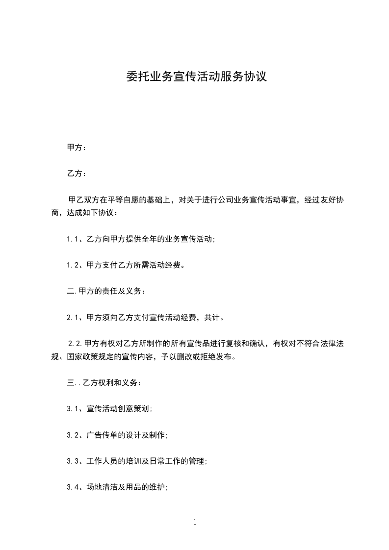 1.1、乙方向甲方提供全年的业务宣传活动;