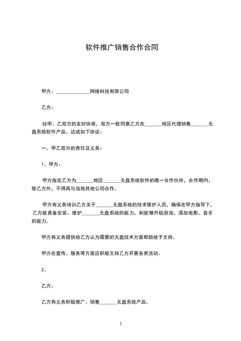 乙方有义务积极推广、销售_______无盘系统产品。