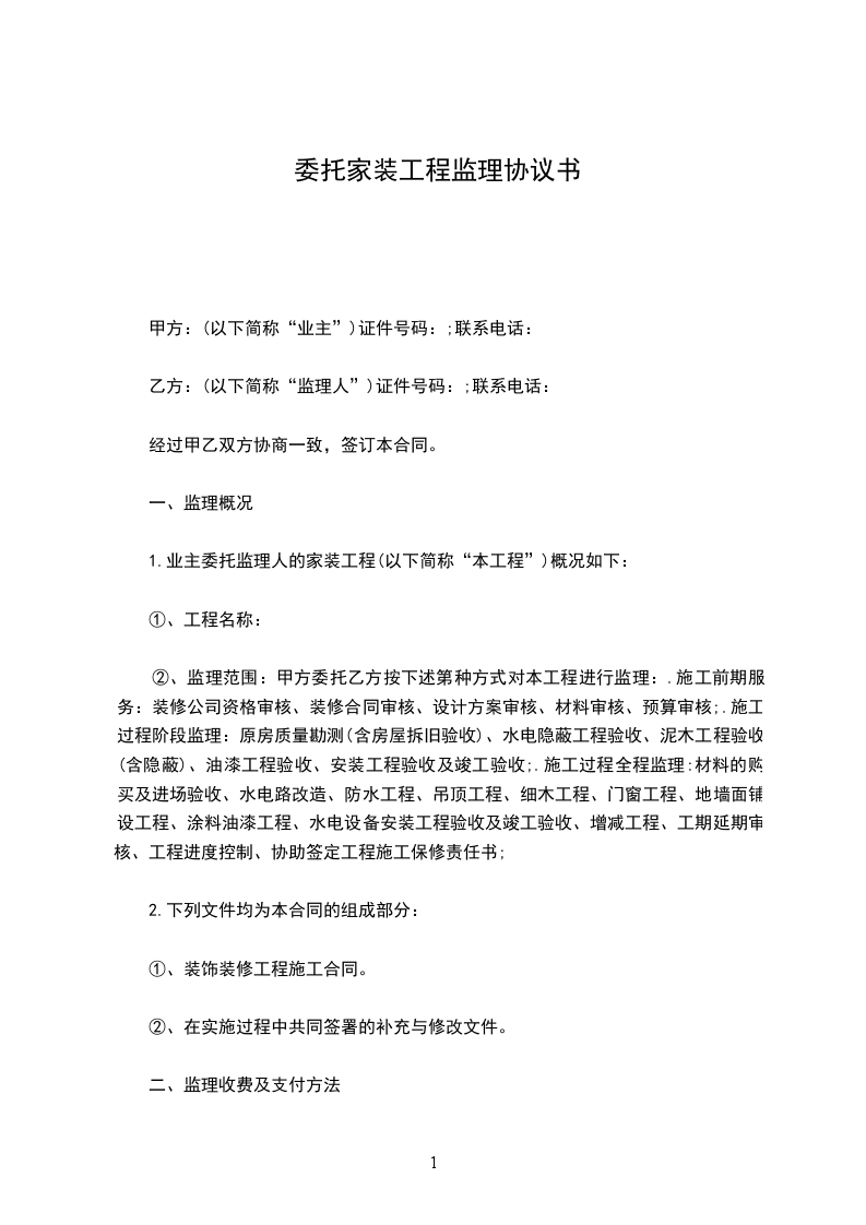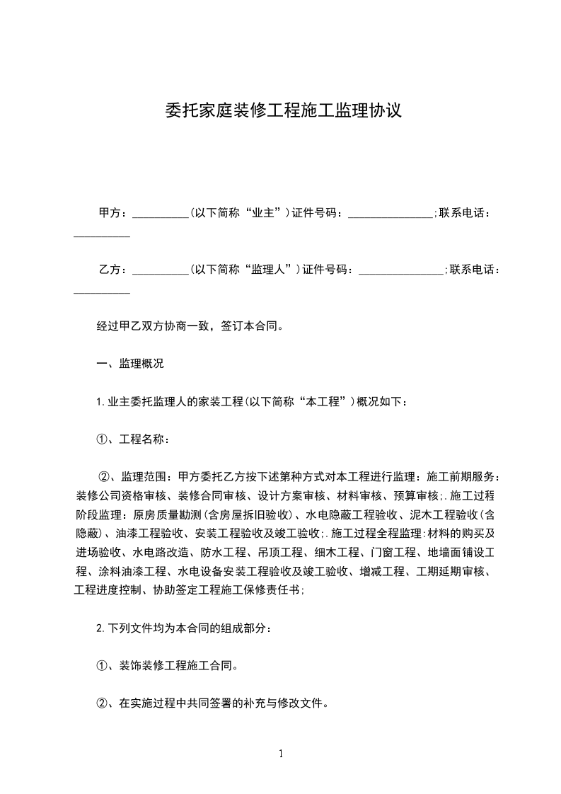 1.业主委托监理人的家装工程(以下简称“本工程”)概况如下: