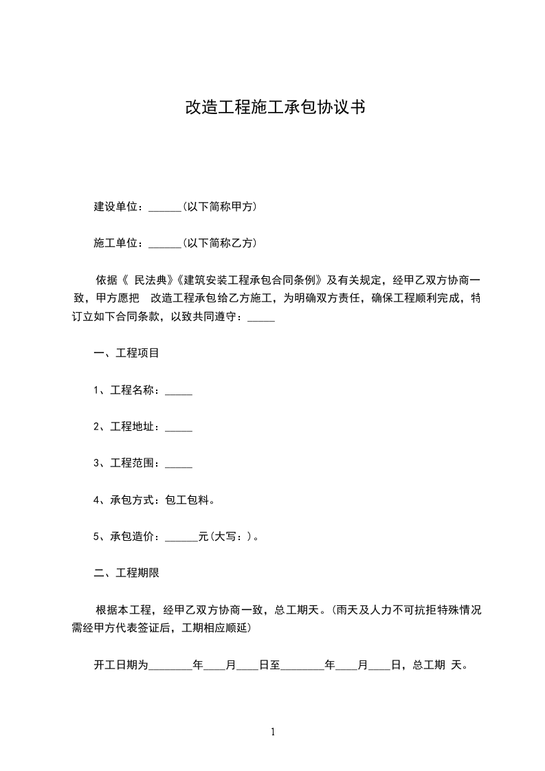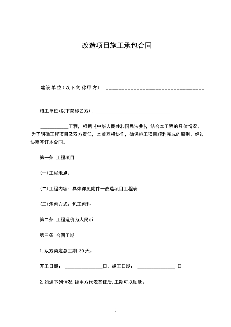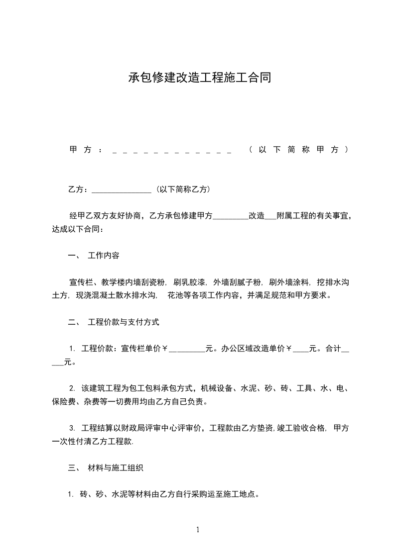4、承包方式:______(包工包料、清包工、部分承包)。