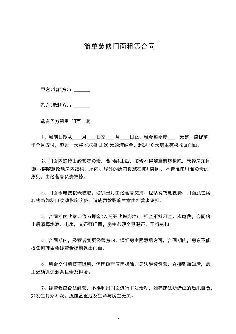 篇1门面装修合同