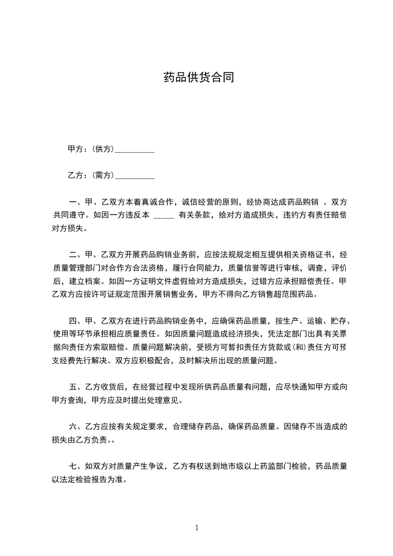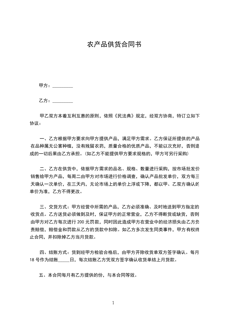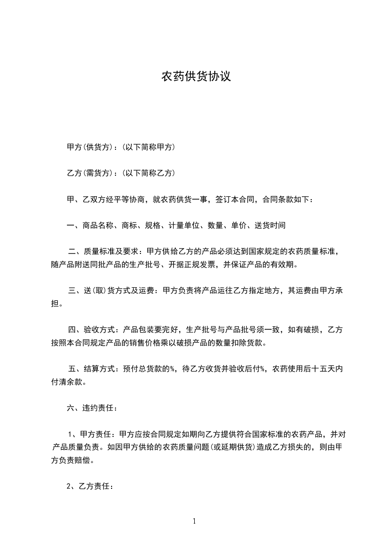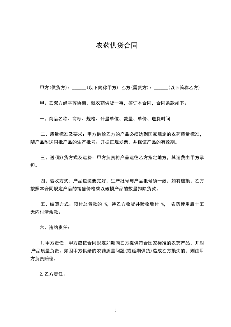 甲、乙双方经平等协商,就农药供货一事,签订本合同,合同条款如下: