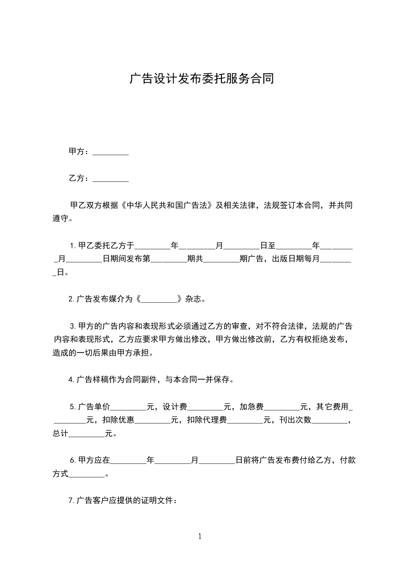 1、甲方委托乙方在其媒体(或代理媒体)上发布广告。