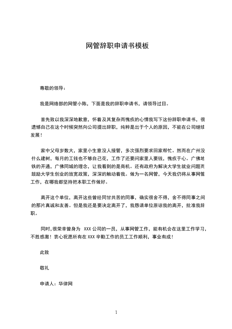 我是网络部的网管小陈,下面是我的辞职申请书,请领导过目。