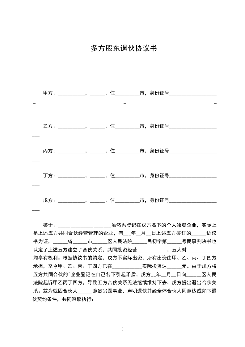 - 合伙人退伙,应当提前[X]日通知其他合伙人。