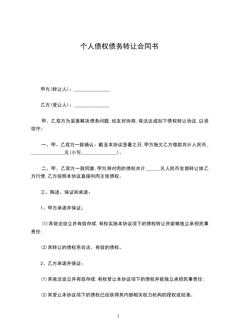 二、甲、乙双方一致同意,甲方将对丙的债权共计______元人民币全部转让给乙方行使,乙方按照本协议直接向丙主张债权。