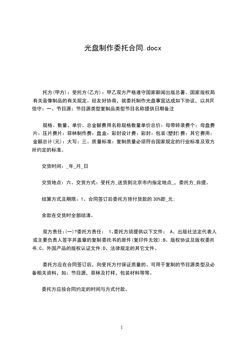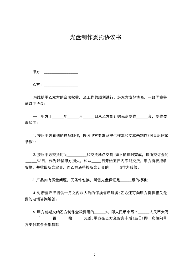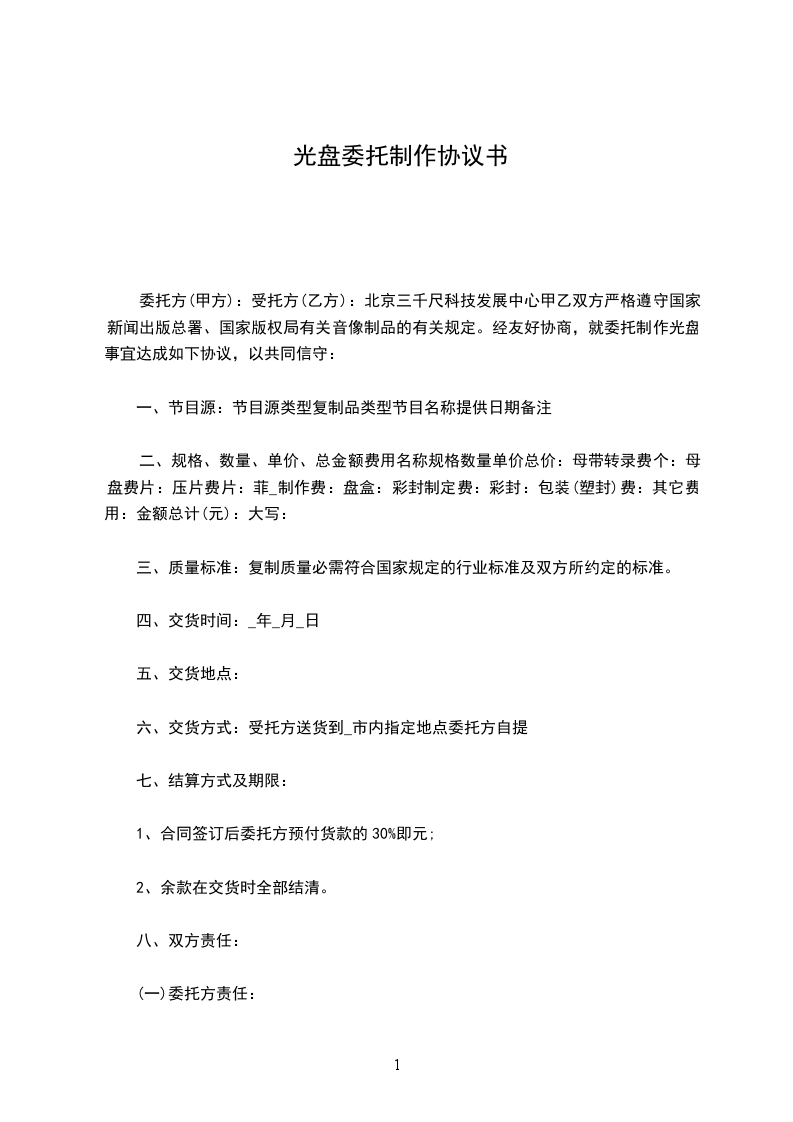 1、受托方对委托加工的光盘按约定的时间与数量交付委托方(数量误差在万分之二内为合理误差)。