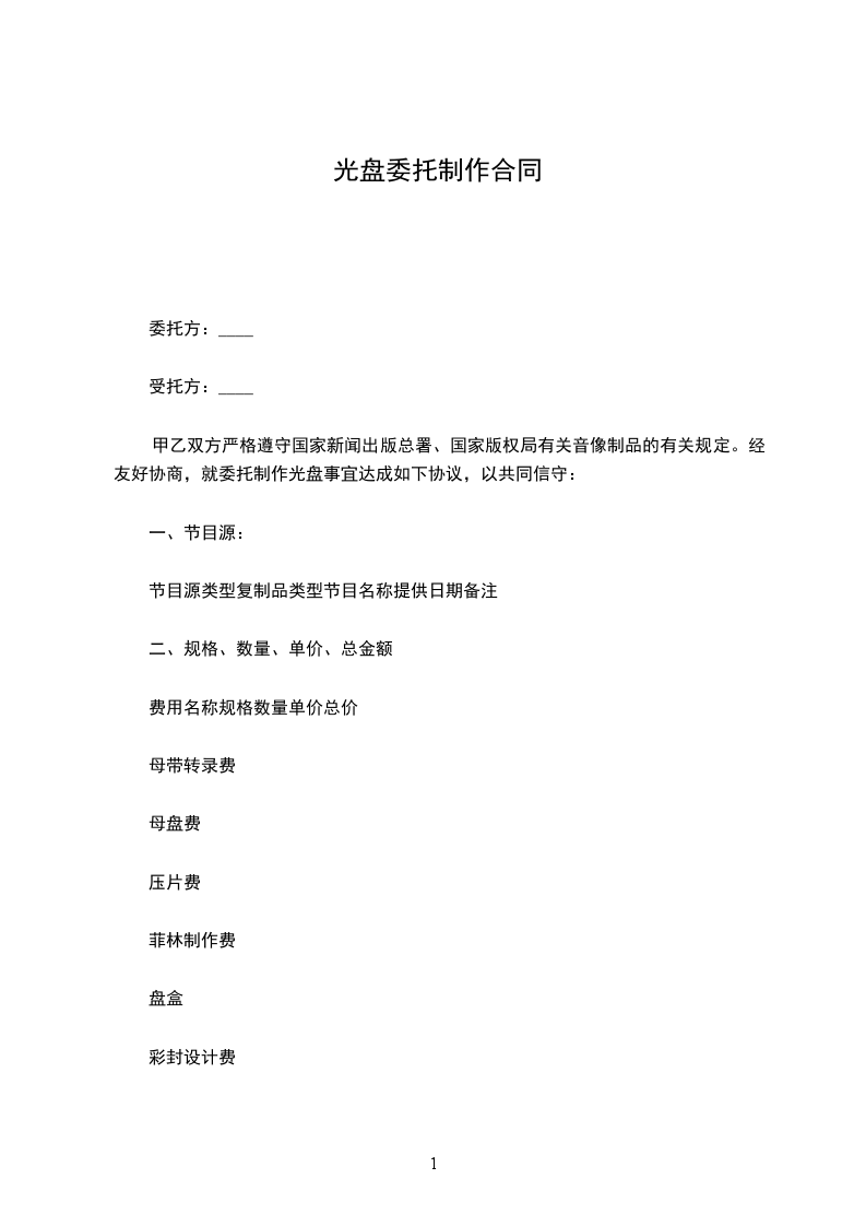 2、委托方应在合同签订后,向受托方付保证质量的、可用于复制的节目源类型及必备相关资料,如:节目源,菲林及打样,包装材料等等。