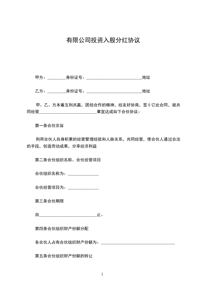 (1)乙方享有每年年度固定分红的权利,按入股多少确定。