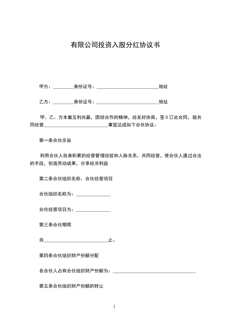 (1)乙方享有每年年度固定分红的权利,按入股多少确定。