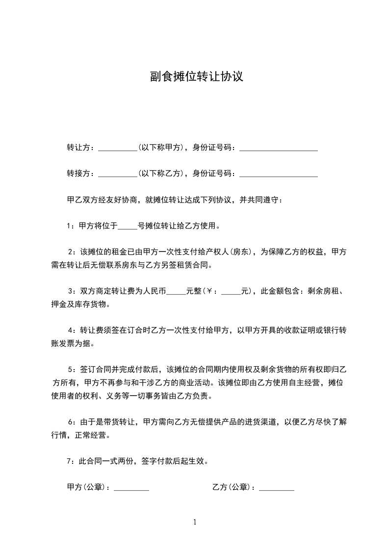 篇1摊位转让协议书