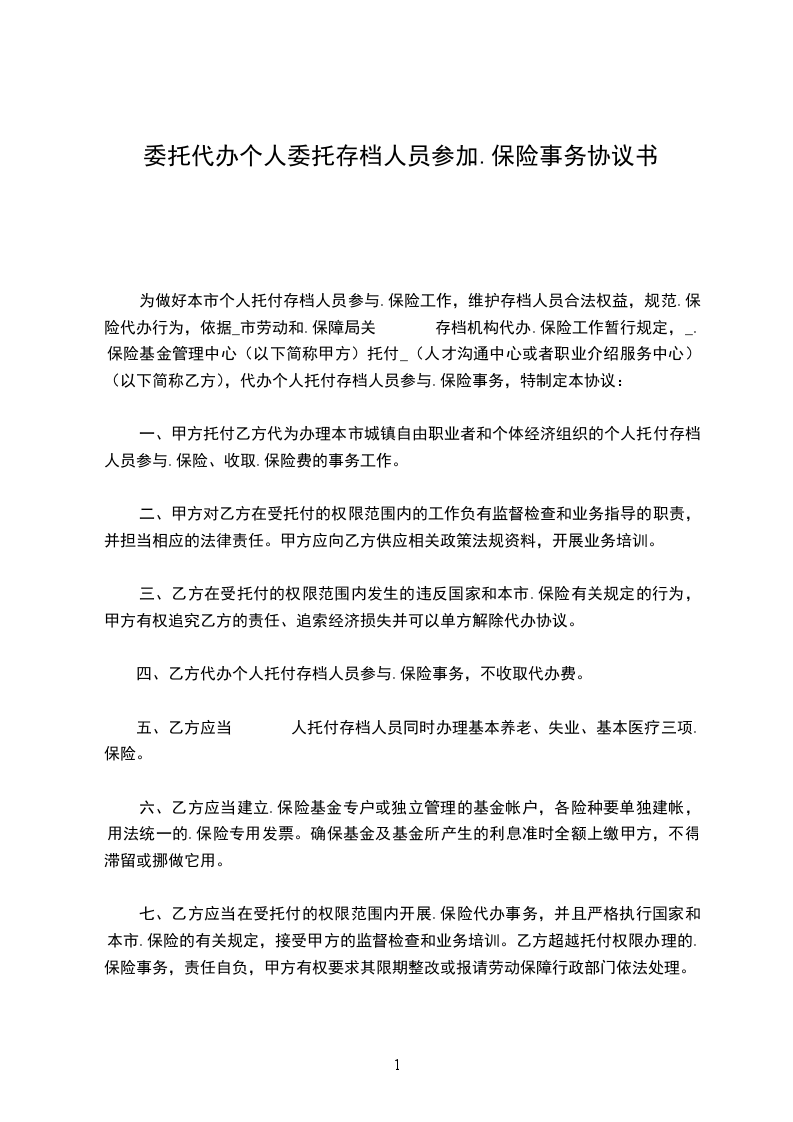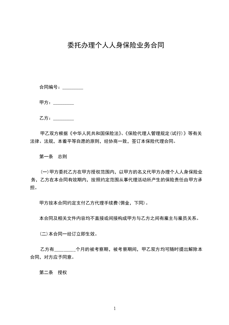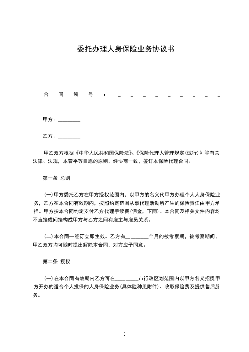 (一)在本合同有效期内乙方可在_________市行政区划范围内以甲方名义招揽甲方开办的适合个人投保的人身保险业务(具体险种见附件)、收取保险费及提供售后服务。