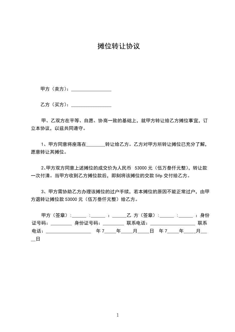 篇1摊位转让协议