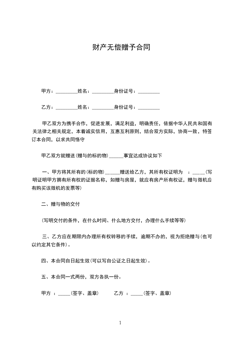篇5财产赠予协议书