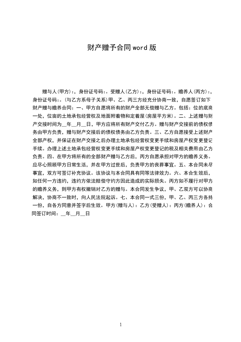 篇1财产赠予协议书