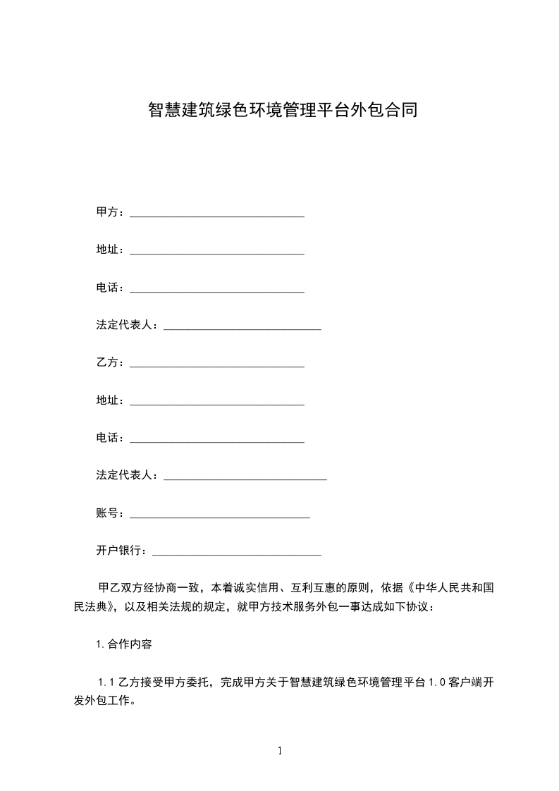1.1乙方接受甲方委托,完成甲方关于智慧建筑绿色环境管理平台1.0客户端开发外包工作。