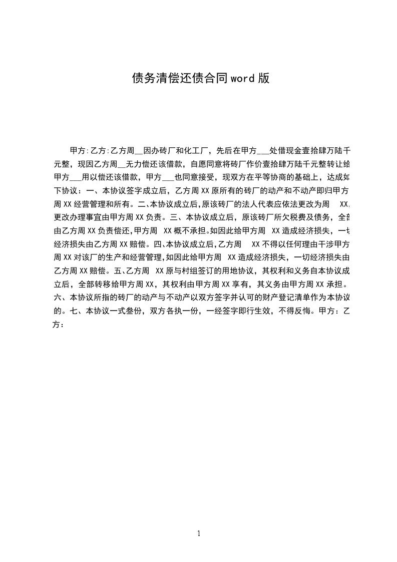 - 一次性清偿:乙方应于本协议签订之日起______日内,将全部债务一次性支付至甲方指定的银行账户。