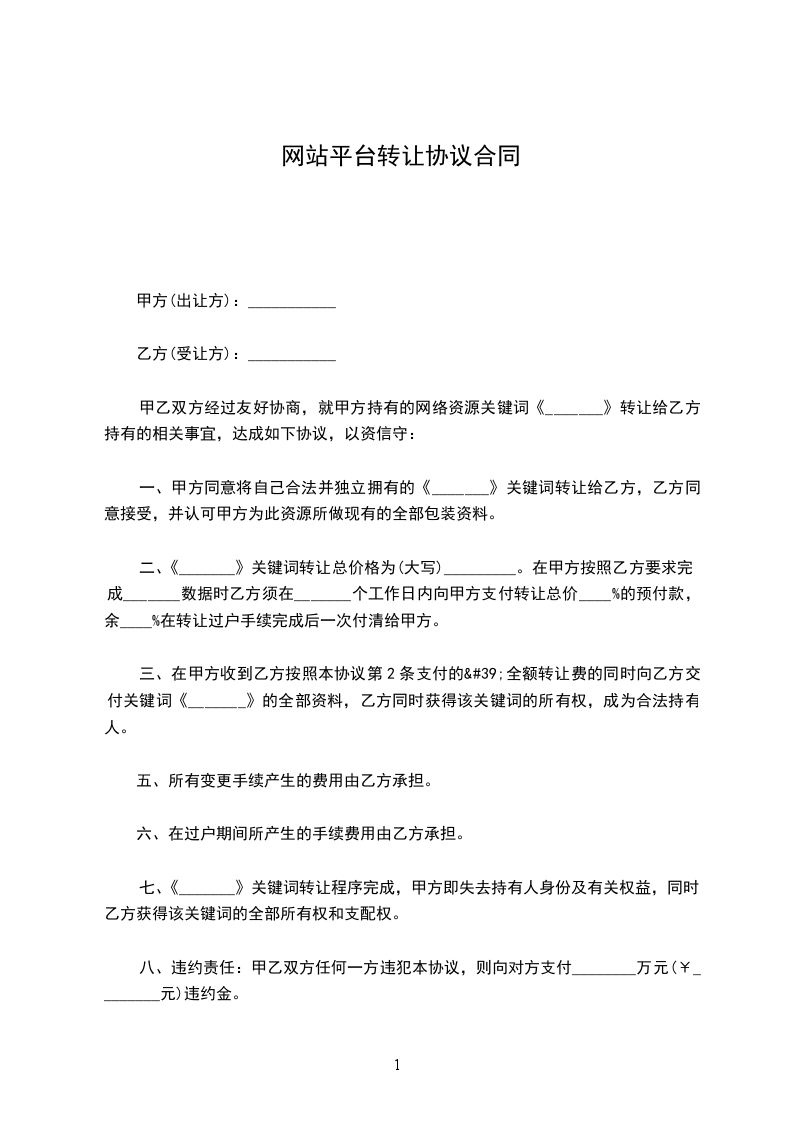1. 甲方为乙方提供[具体网站平台名称]的访问及使用权限,乙方可在符合本协议约定的前提下,使用本平台提供的各项功能和服务。
