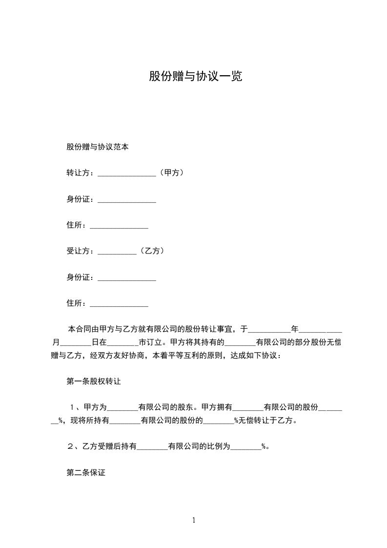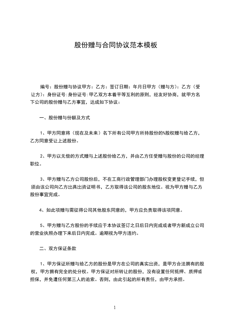 1. 甲方将其持有的[公司名称] %的股份赠与乙方。