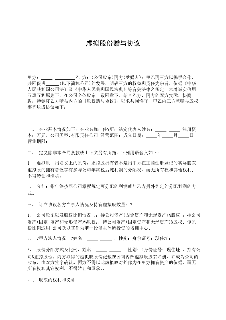 鉴于甲方持有[公司名称](以下简称“目标公司”)的部分股份,甲方愿意将其持有的部分股份无偿赠与乙方,双方经友好协商,达成如下协议: