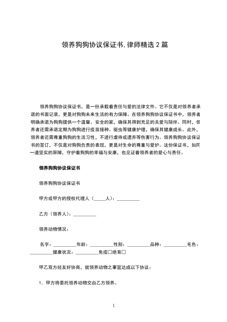 1. 领养后,甲方享有狗狗的饲养、照顾及陪伴等权利。