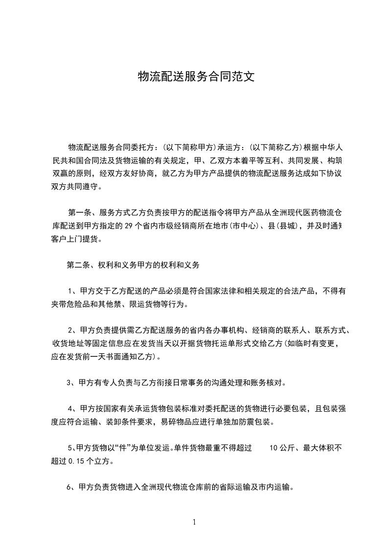 1. 甲方有权要求乙方按照本合同约定的时间、路线和方式安全、准确地配送货物。