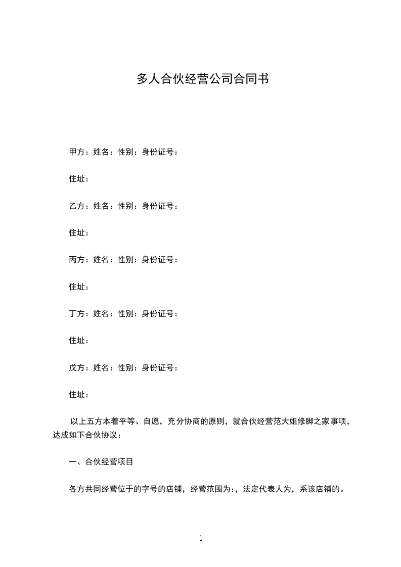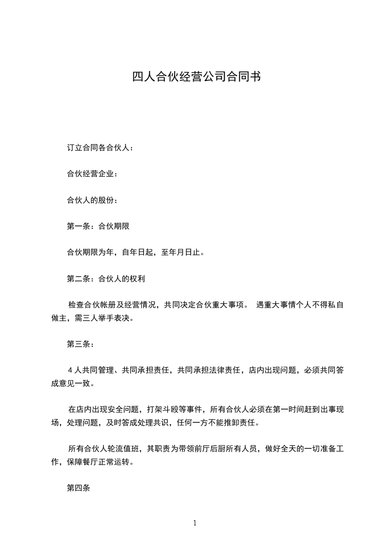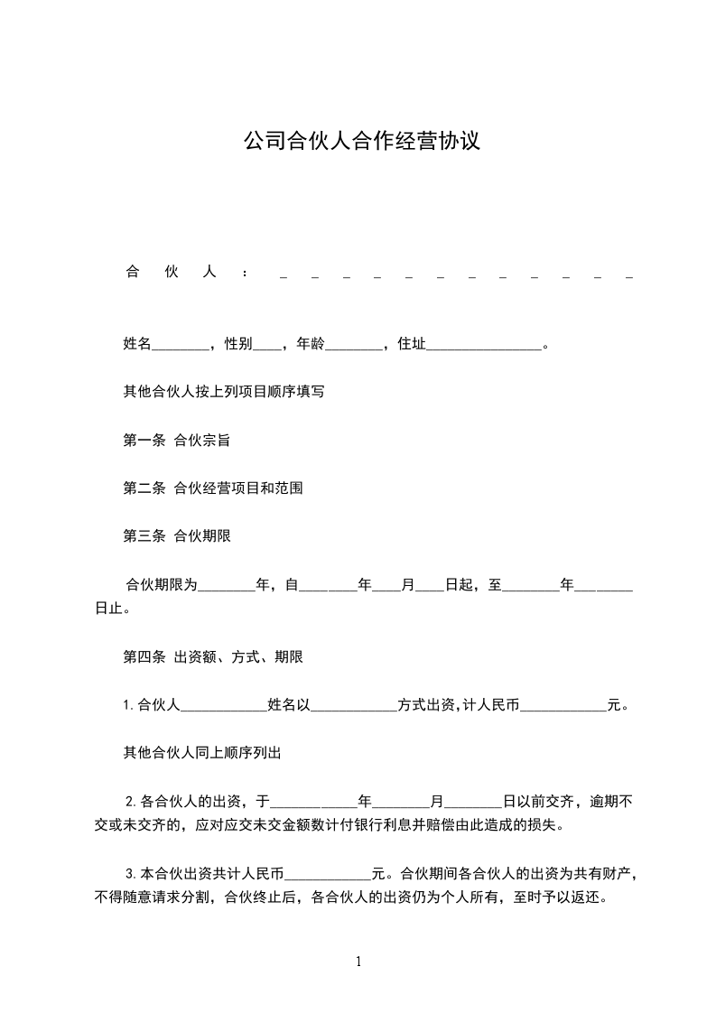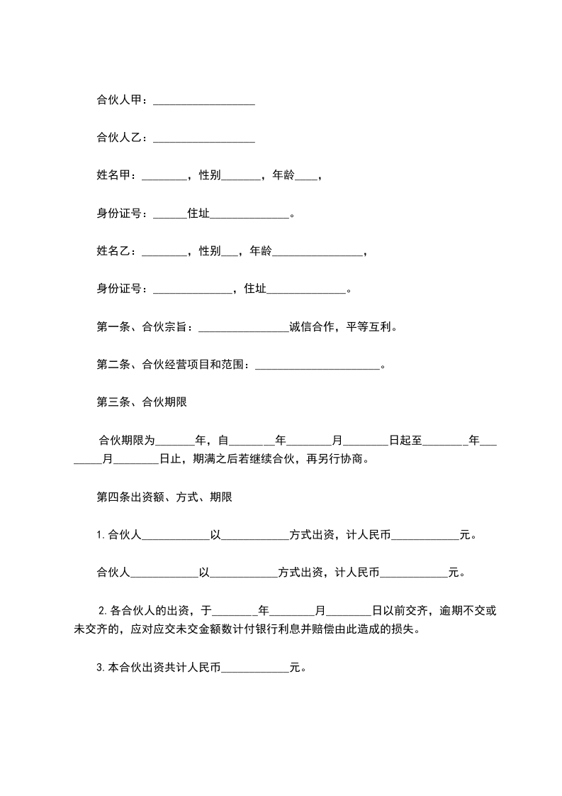 第一条、合伙宗旨:________________诚信合作,平等互利。