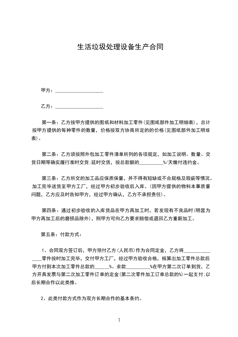 2. 乙方应采用[具体处理方式及工艺]对生活垃圾进行处理,处理过程中应采取有效措施防止二次污染。