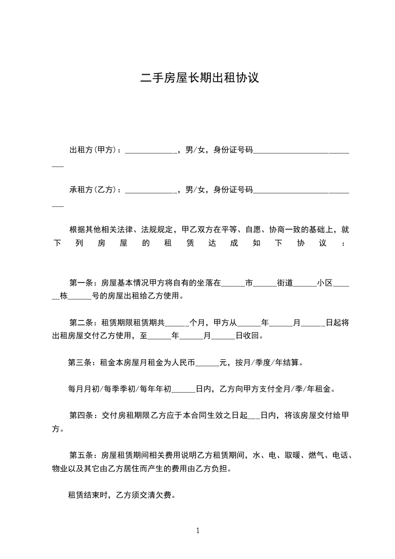 出租方(甲方):_____________,男/女,身份证号码___________________________