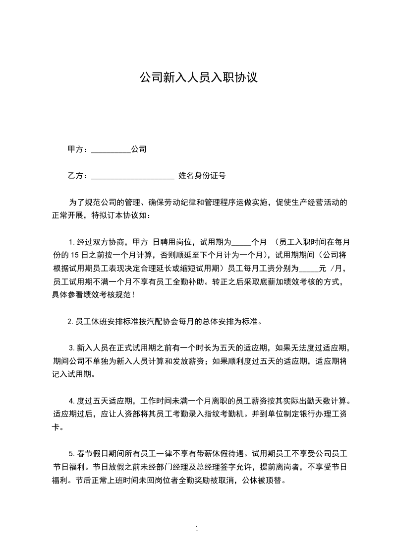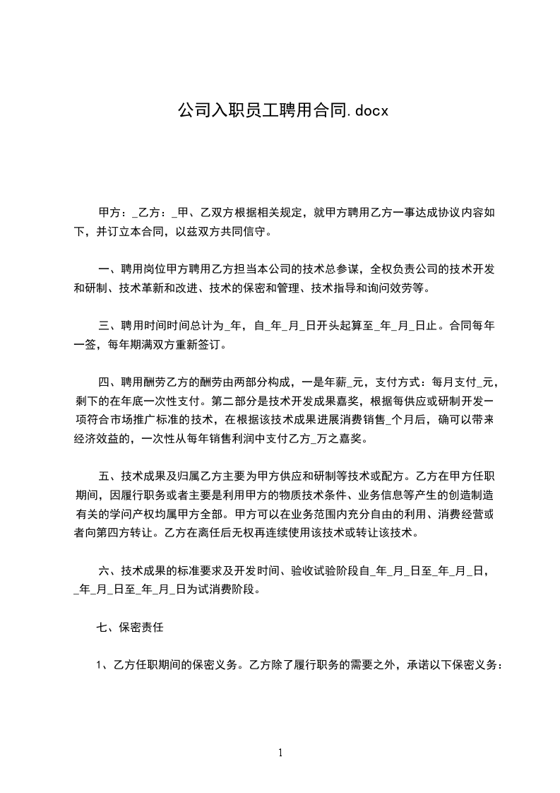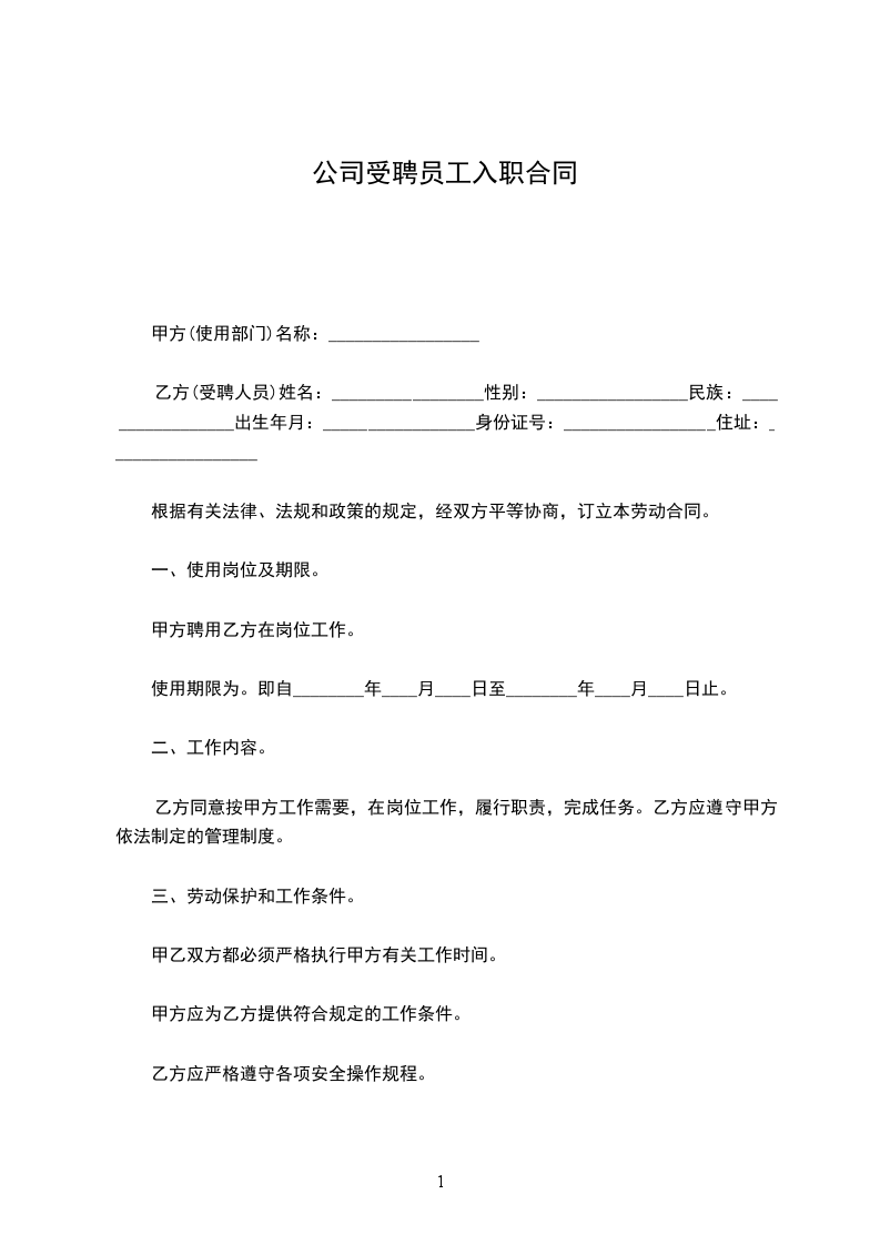 乙方(受聘人员)姓名:_________________性别:_________________民族:_________________出生年月:_________________身份证号:_________________住址:_________________