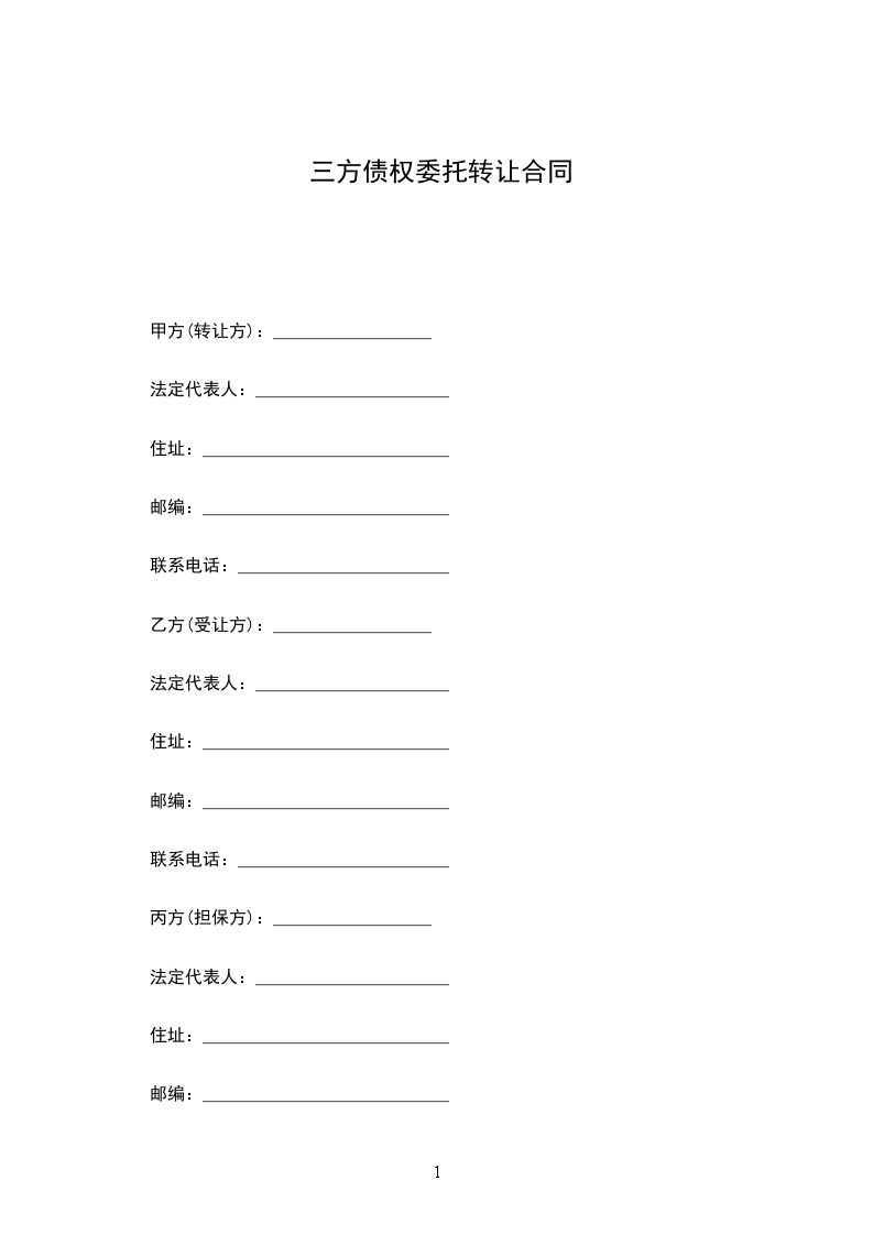 丙方:_________________为妥善解决甲、乙、丙三方的债权债务问题,甲、乙、丙三方在平等自愿、协商一致的基础上,依据民法典等有关法律、法规,就债权转让事宜达成如下协议:第一债权转让