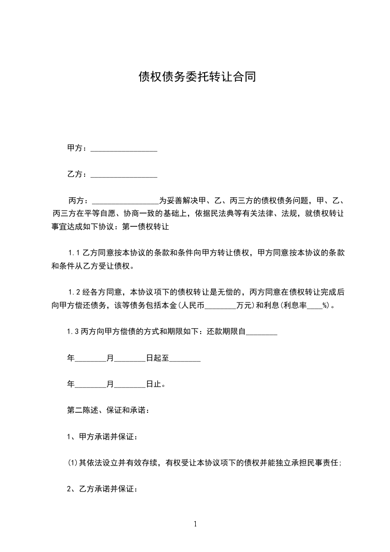 1.2经各方同意,本协议项下的债权转让是无偿的,丙方同意在债权转让完成后向甲方偿还债务,该等债务包括本金(人民币________万元)和利息(利息率____%)。