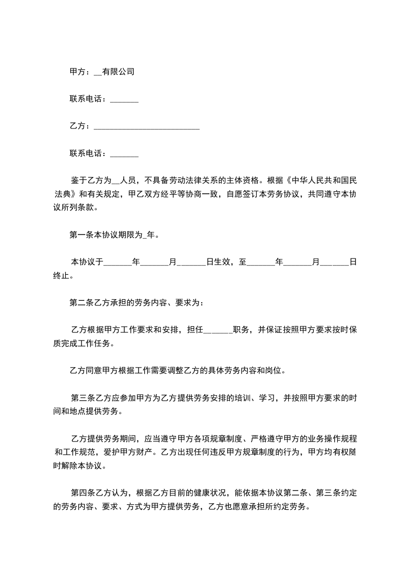 第四条工作时间和休息休假、社会保险、劳动保护、劳动条件和职业危害防护等按照法律法规、规章等规定执行。