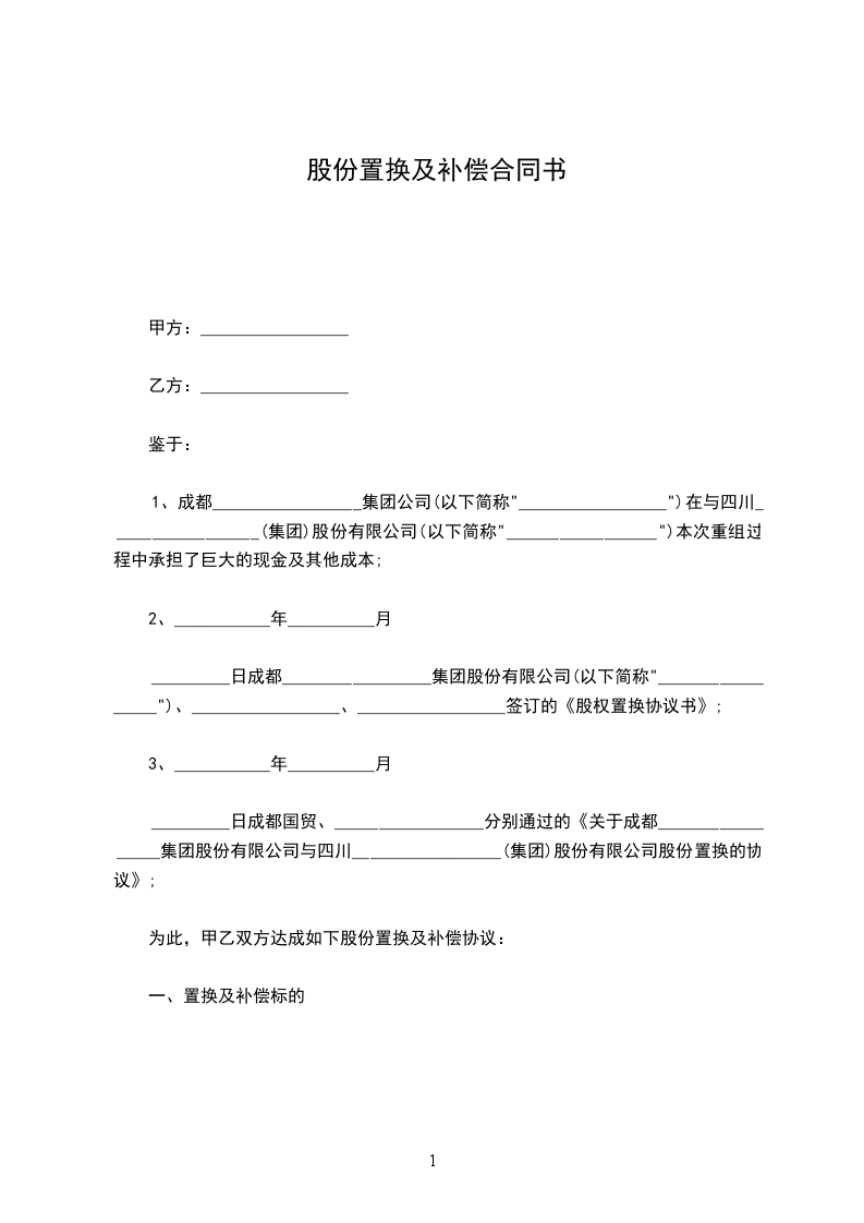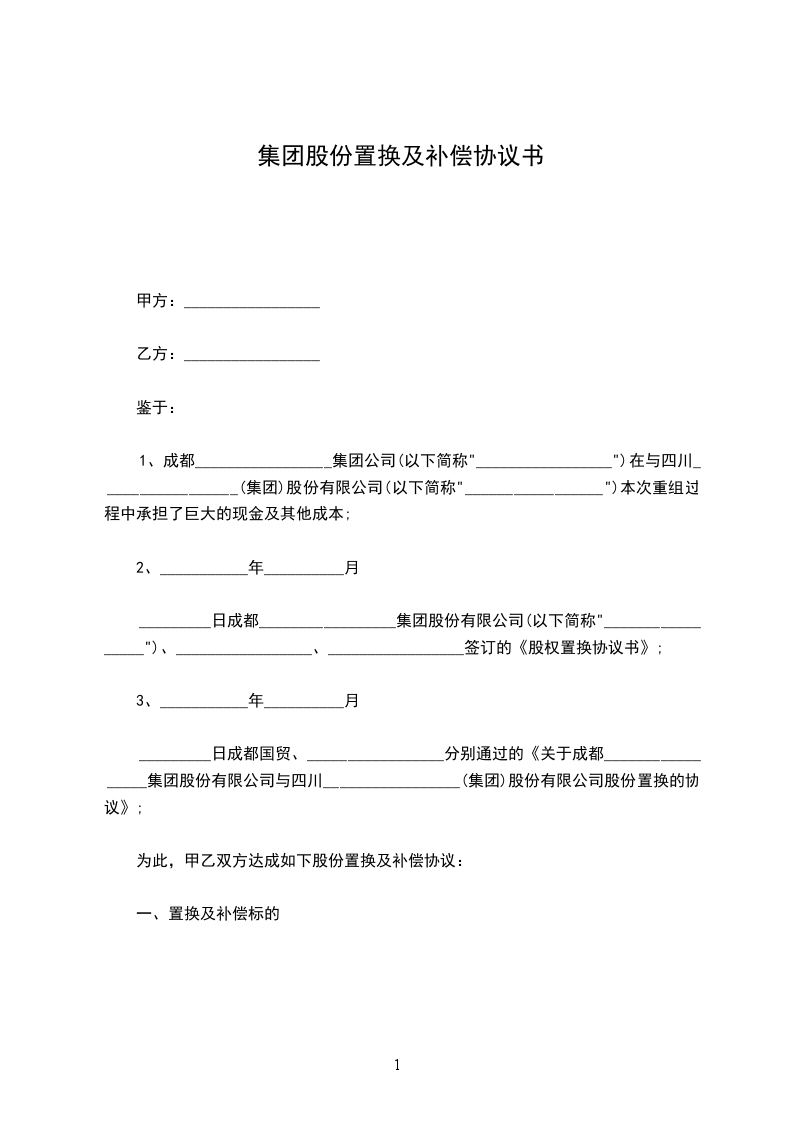 2、___________年__________月_________日成都___________集团股份有限公司(以下简称"__________")、______________、_____________签订的《股权置换协议书》