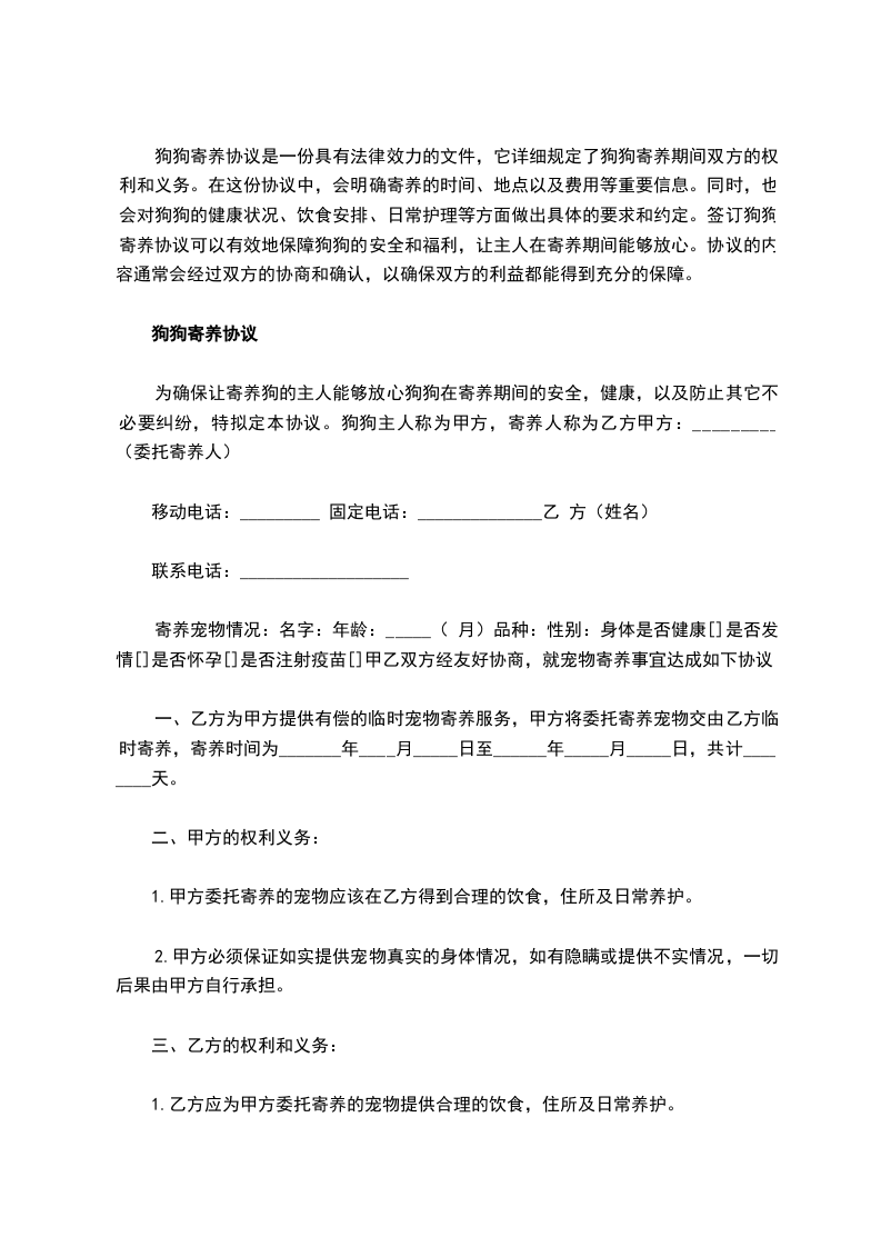 5. 甲方应尊重狗的习性和个性,给予狗足够的关爱和陪伴,不得随意打骂或驱赶狗。