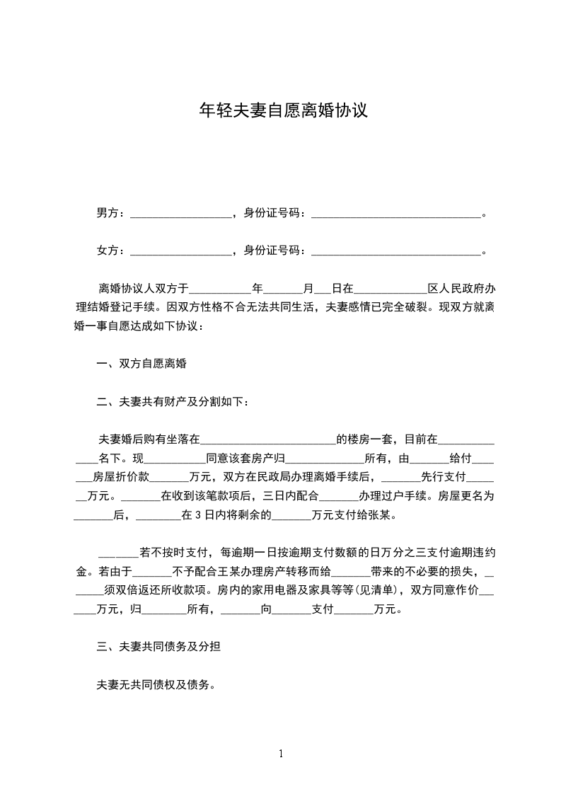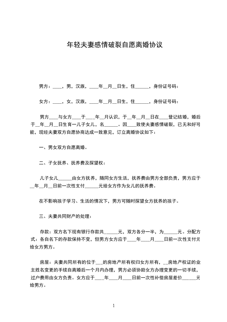 协议人(男方):_______________协议人(女方):_______________