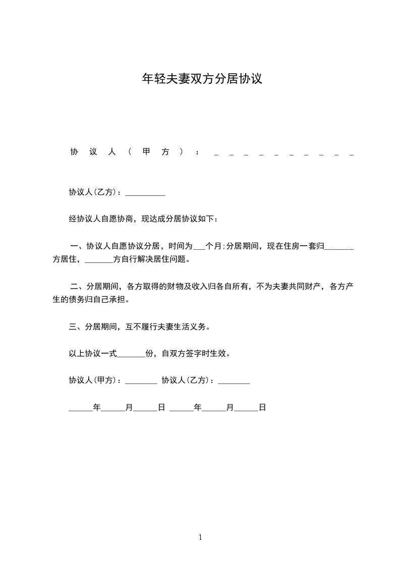1、分居时间为_________年,从_________年_________月_________日到_________年_________月_________日止。