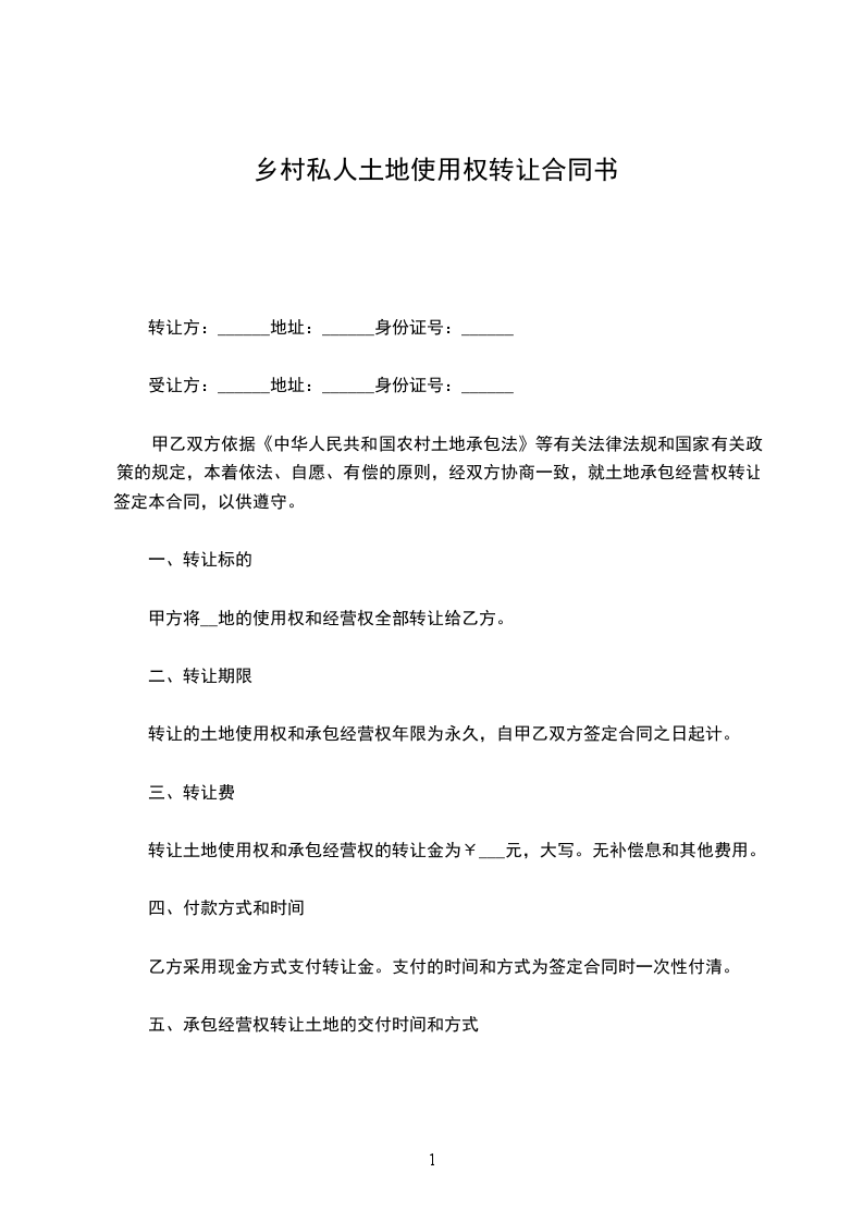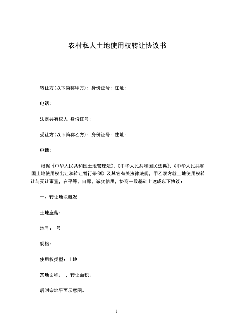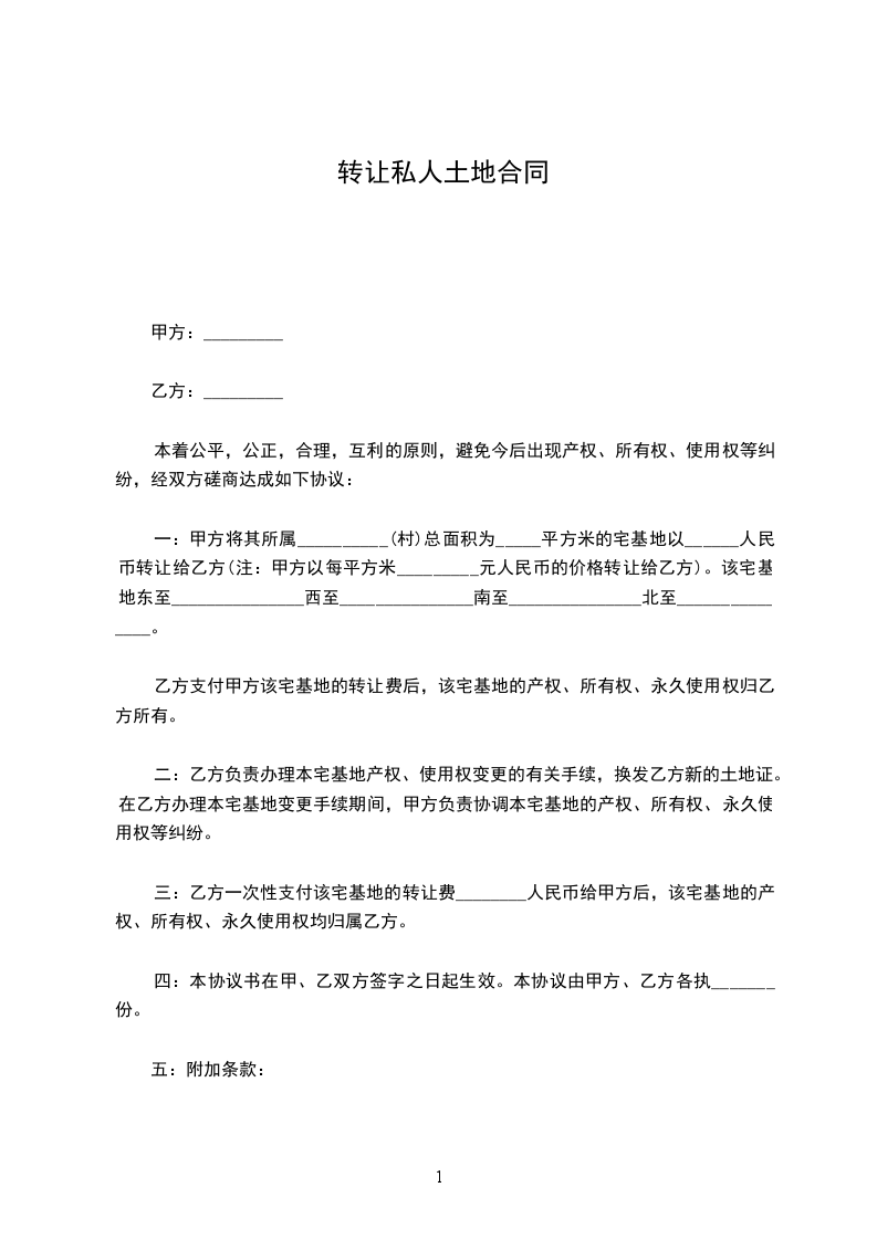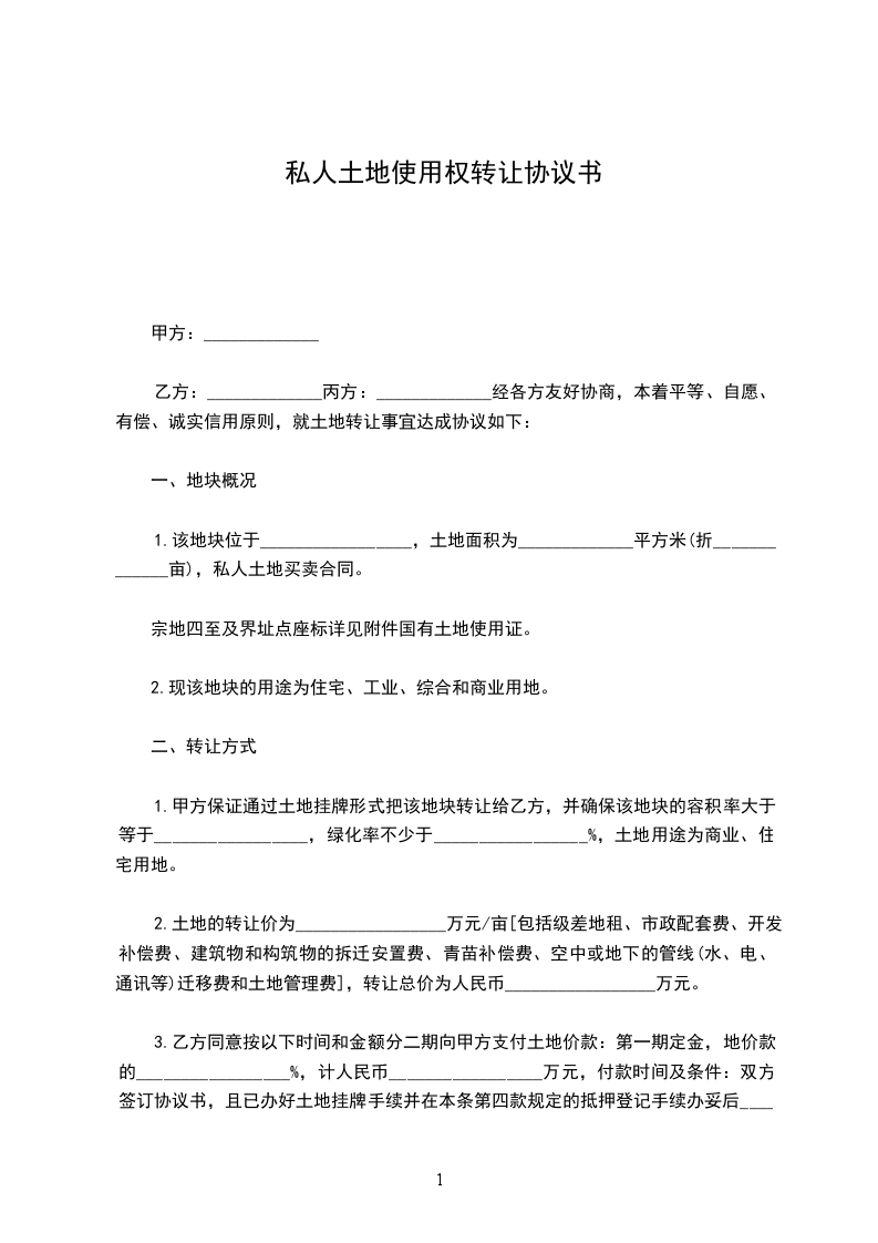1.该地块位于_________________,土地面积为_____________平方米(折_____________亩),私人土地买卖合同。