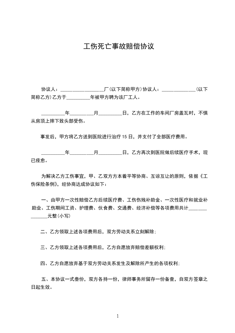 为解决乙方工伤事宜,甲、乙双方方本着平等协商、互谅互让的原则,依据《工伤保险条例》,经协商达成协议如下: