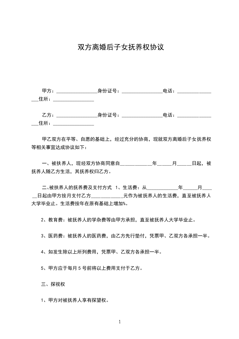 四、本协议一式三份,自双方签字并经婚姻登记机颁发《离婚证》之日起生效。
