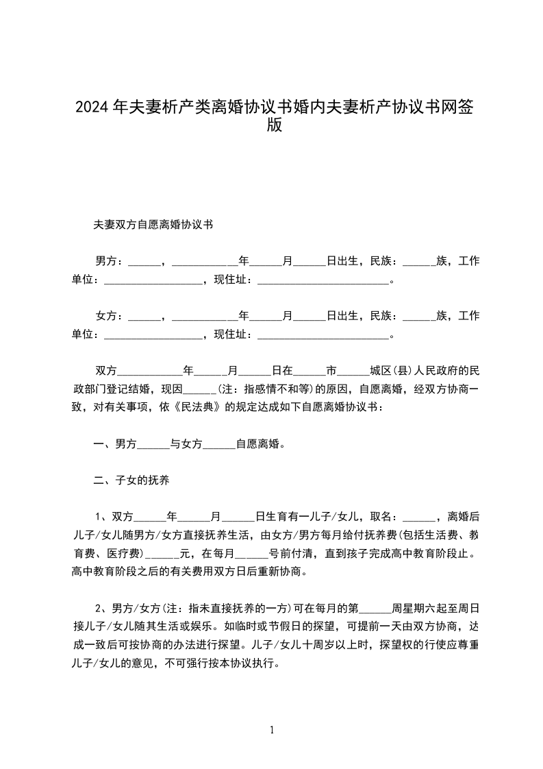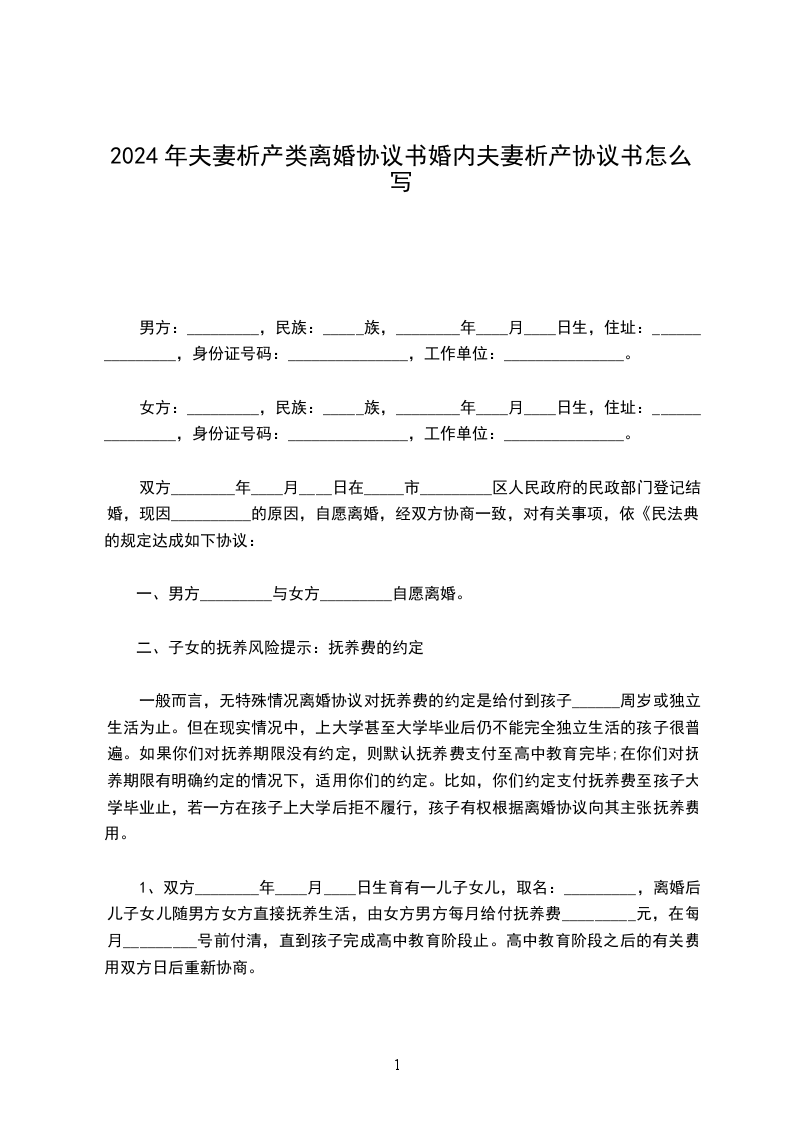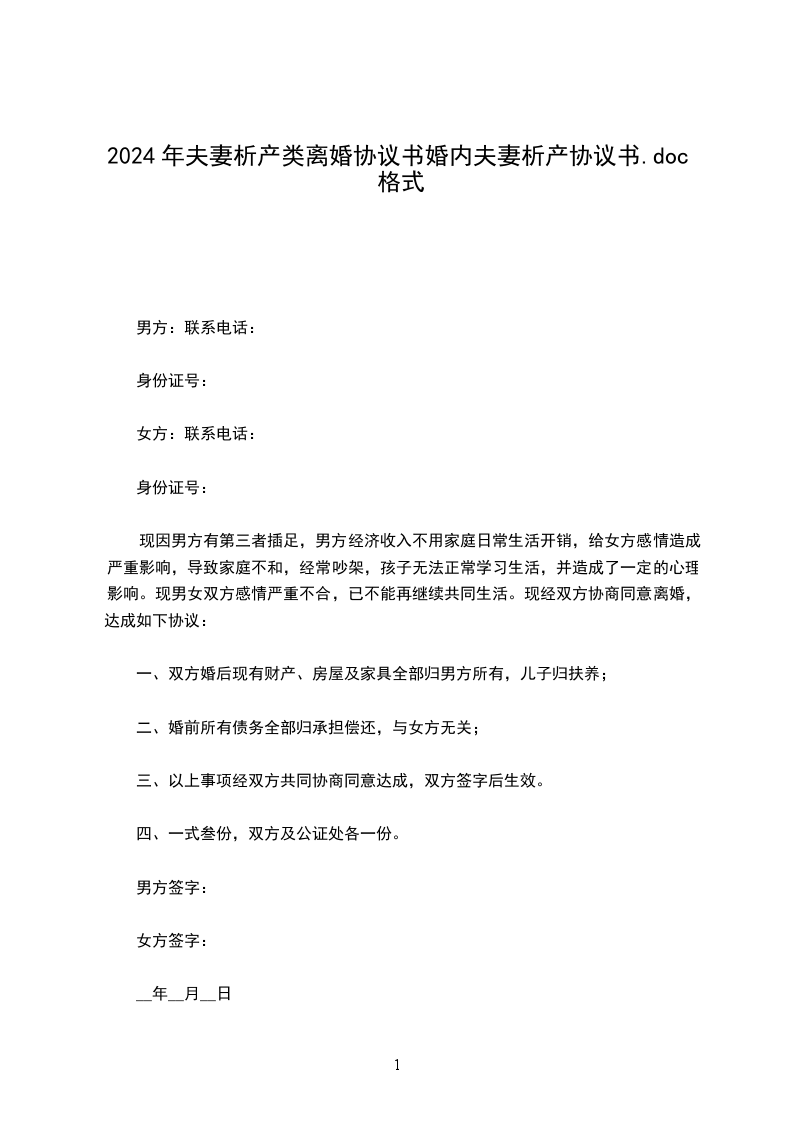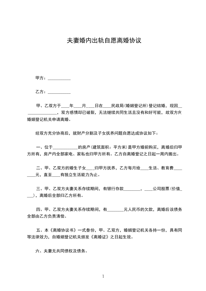 10、本协议壹式贰份,由男女双方各执壹份,具有同等法律效力。
