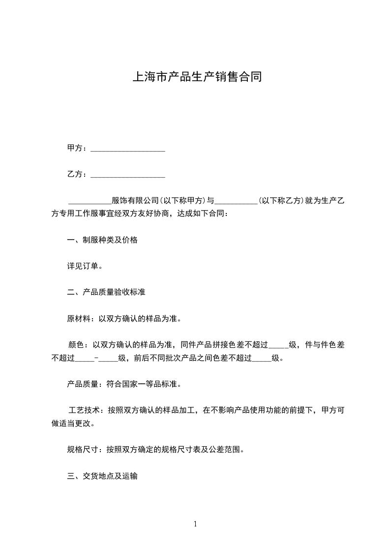 5.交货期限:样衣确认后_____天内交货(限上海市),外地另加运输时间。