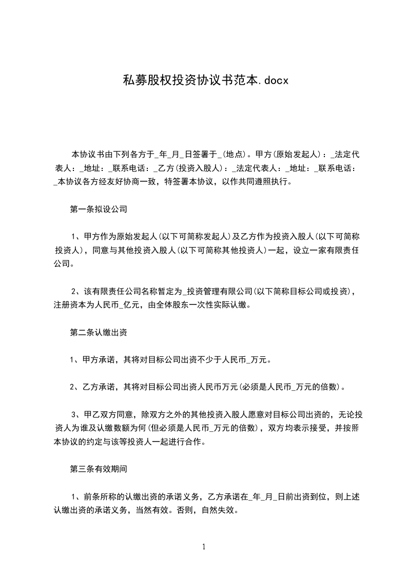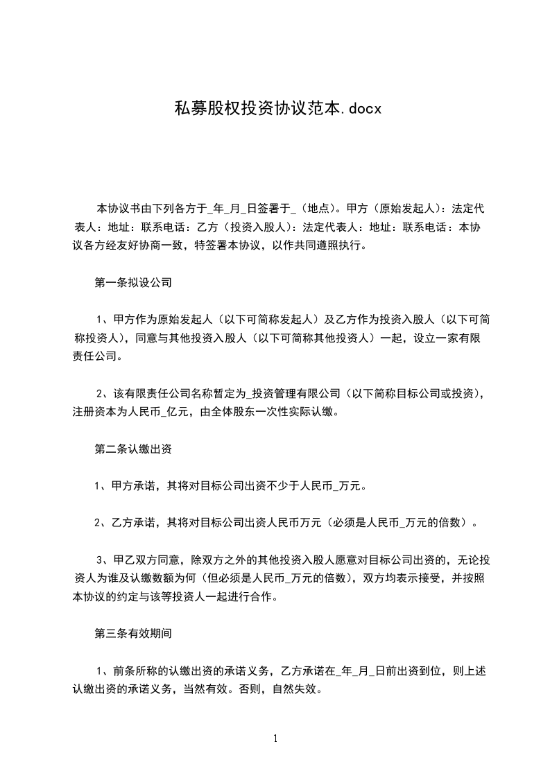 鉴于甲方具有对特定项目进行投资的意愿和能力,乙方拟通过私募方式向甲方募集资金用于其业务发展,经双方友好协商,依据《中华人民共和国民法典》等相关法律法规的规定,就甲方对乙方进行私募股权投资事宜,达成如下协议: